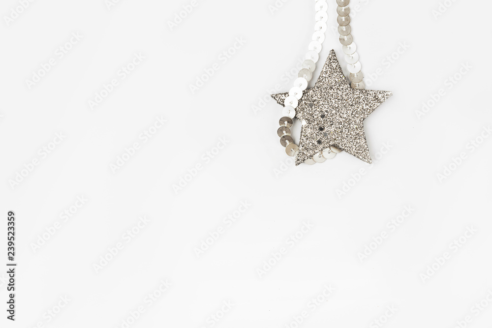 Christmas composition. Christmas balls, pink and silver decorations on white background. Flat lay, top view, copy space