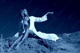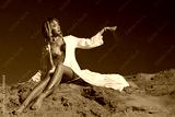Oriental woman in a sandy desert with mehendi patterns on her body