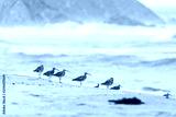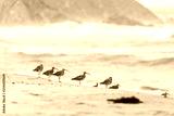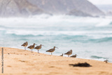 Curlews or "Zarapitos" finding food to feed in at Tunquen sand beach an amazing place to observe wildlife in their wild natural environment, Chile