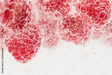 Fresh raspberries in water wiht air bubbles.