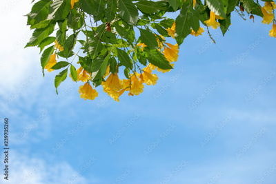 autumn leaves against blue sky