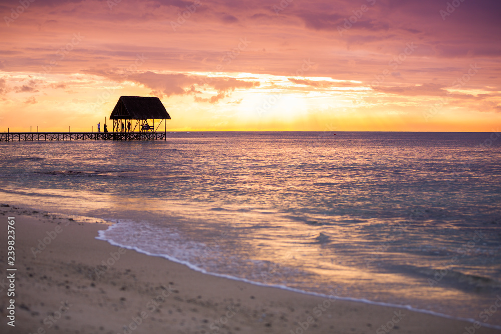 Sunset Panorama of a bridge in the north coast of Mauritius