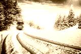 winter car on white road
