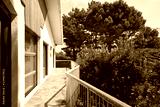 Terrace in a sunny day with trees, country house