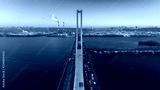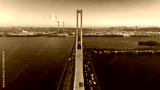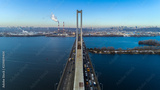 Aerial view of the South Bridge. Aerial view of South subway cable bridge. Kiev, Ukraine.