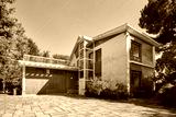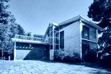 Old villa with garden in a sunny summer day, clear blue sky in Italy
