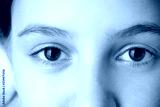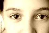 Beautiful kid eyes with long eyelash. closeup of brown eyes with pupil and eyebrow. Teenage ophthalmology. White caucasian children female face with open eyes. Healthy eyesight. Scin with rosacea