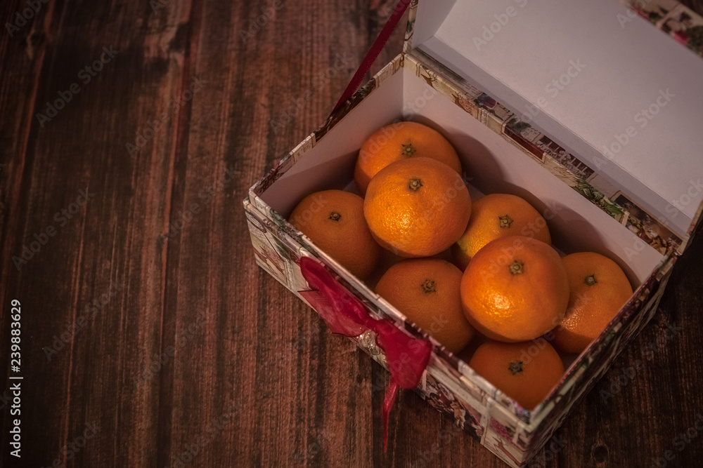 Christmas fit box full of orange mandarines