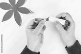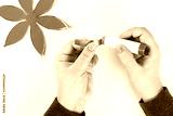 Red gold handmade diy chinese lantern on white background. Gift Ideas, concept Chinese New Year. Sky lantern. Step by step. process crafts. Top view.