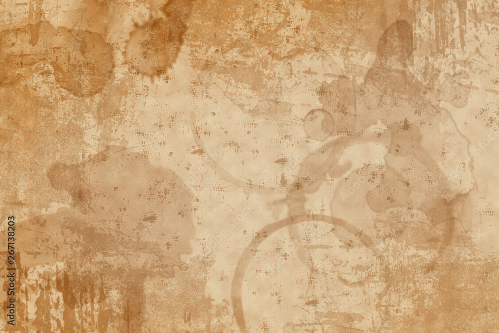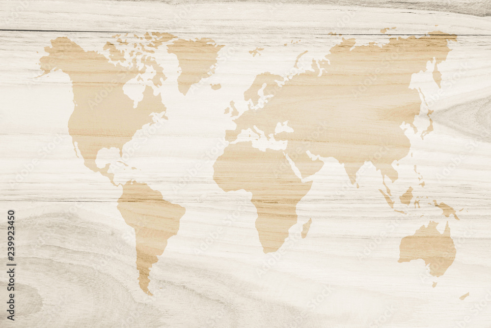 World map vintage pattern for background in color tone/ Wood plank brown texture background. Wood all antique cracking furniture painted weathered white vintage peeling wallpaper.