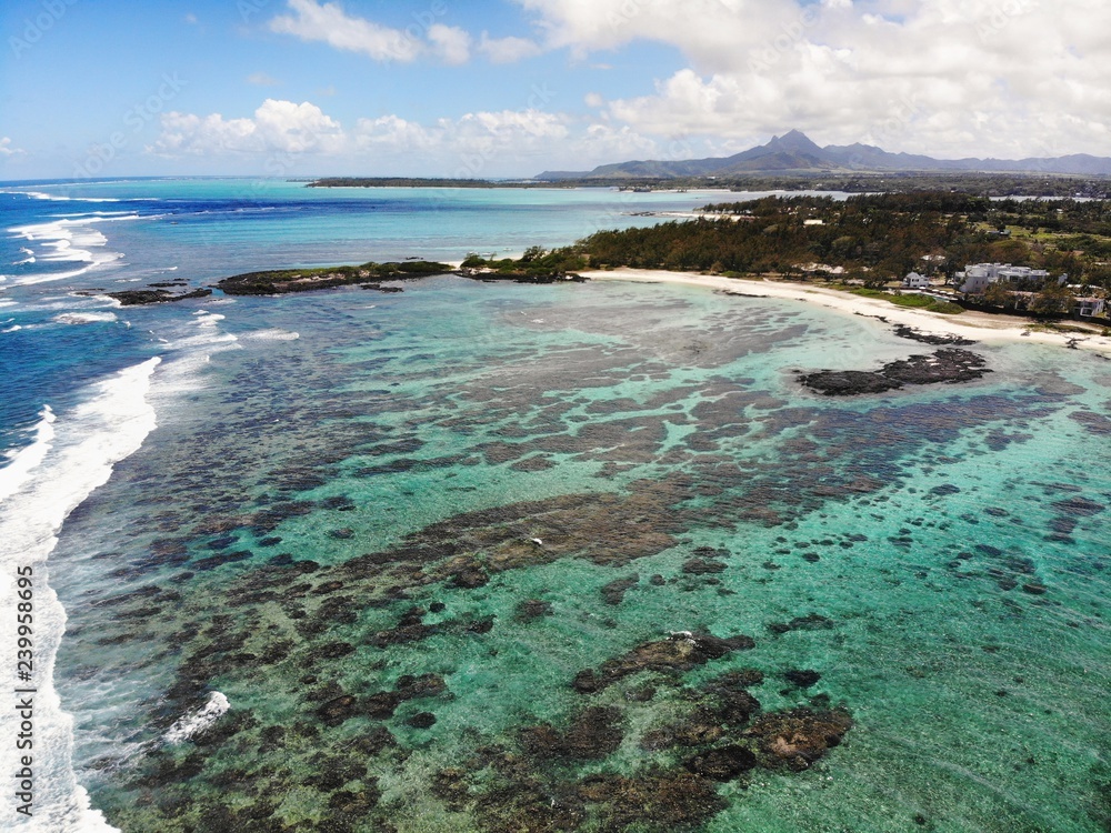 Mauritius Island. Beautiful coastline and beach from helicopter.
