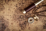 Vintage compass and spyglass telescope on old map - Explorer concept