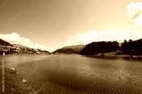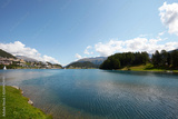 Sankt Moritz blue lake, clean water and sail boats in a sunny summer day in Switzerland