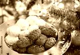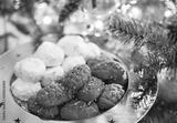 greek melomakarona and kourabies - traditional Christmas cookies with honey and nuts and sugar buns