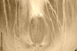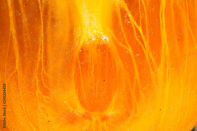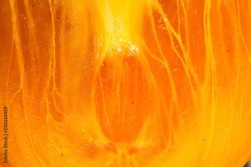 Detailansicht einer aufgeschnittenen Kakifrucht