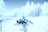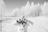 Woman in gloves in magic winter day