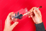 Diy Fairy Jar on red background. Gift ideas, decor February 14, St. Valentines Day, love. Handmade.