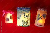 Diy Fairy Jar on red background. Gift ideas, decor February 14, St. Valentines Day, love. Handmade.