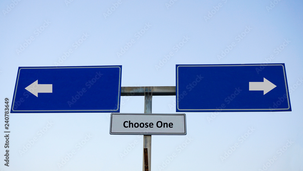 Empty traffic sign isolated on white background. Roadsign name arrow sign on blue sky. Large detailed roadside signage. Blanck copy space for text message. Clipping path. Directional road nameplate.