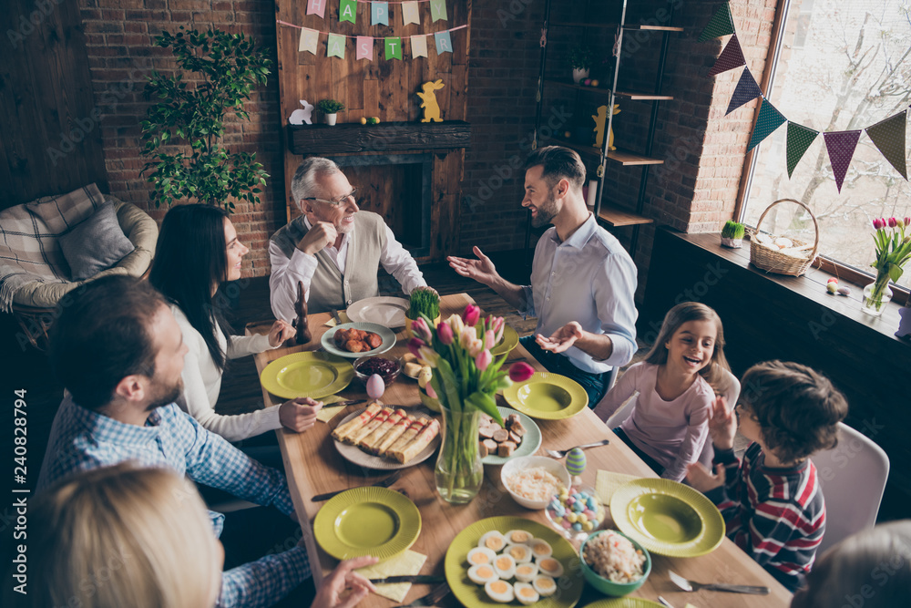 Cheerful positive family small little brother sister sitting hav