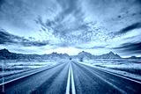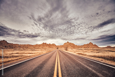 Scenic road in Badlands National Park, color toned picture, South Dakota, USA.