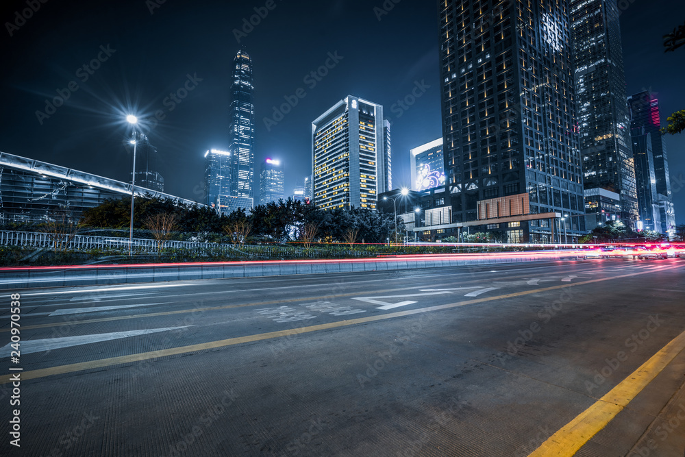 traffic with blur light through city at night.