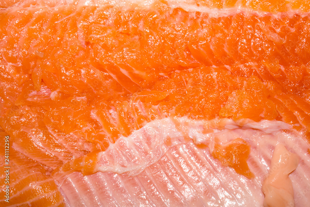 Texture of red fish meat.Background of Trout meat.Salmon fillet.