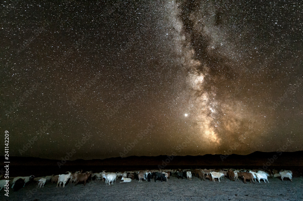 Der Sternenhimmel mit Milchstraße über der Wüste Gobi in der Mongolei
