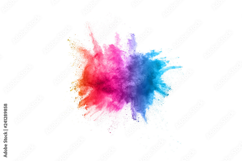 abstract powder splatted background. Colorful powder explosion on white background. Colored cloud. Colorful dust explode. Paint Holi.