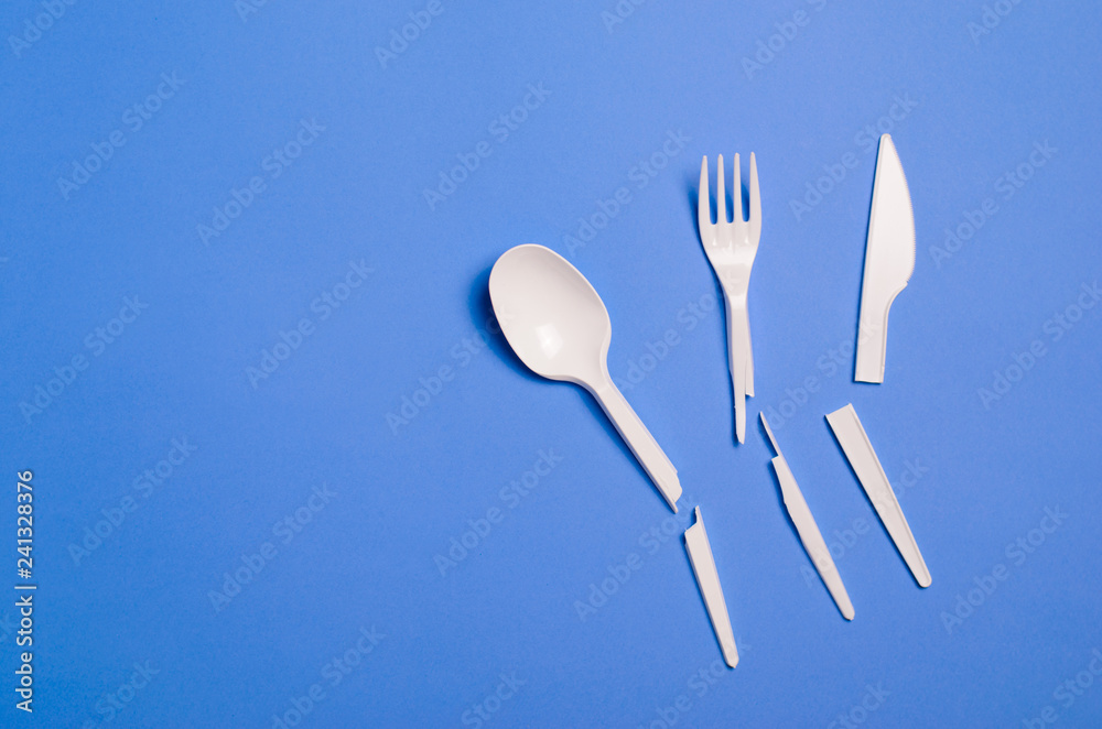 Broken Plastic Cutlery, Plastic Pollution Concept, Top View