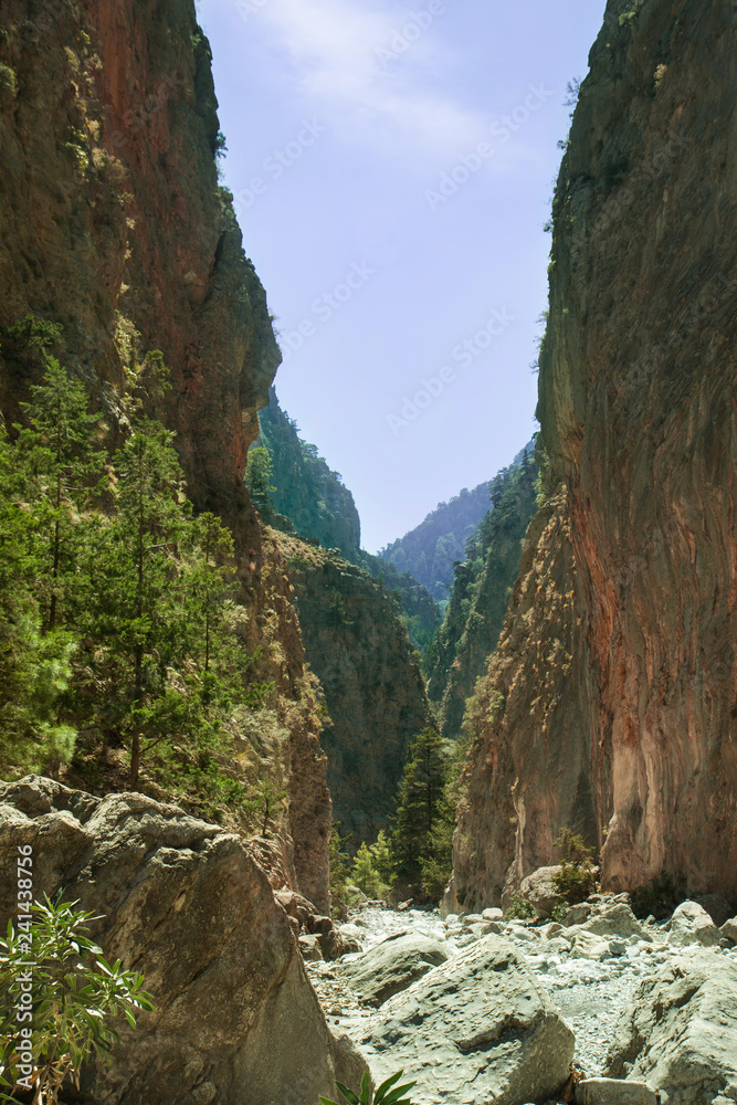 Samaria Gorge between Agia Roumeli and Omalos (Crete, Greece). Grand Canyon near Hania.