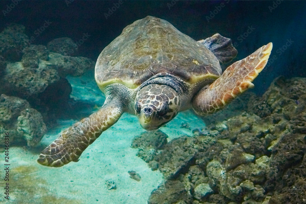 Beautiful sea turtle on the reef.