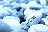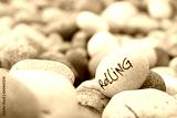 Rolling - is an inscription on a stone. Rolling stone, conceptual image of activity, movement