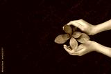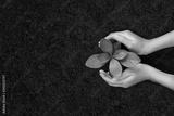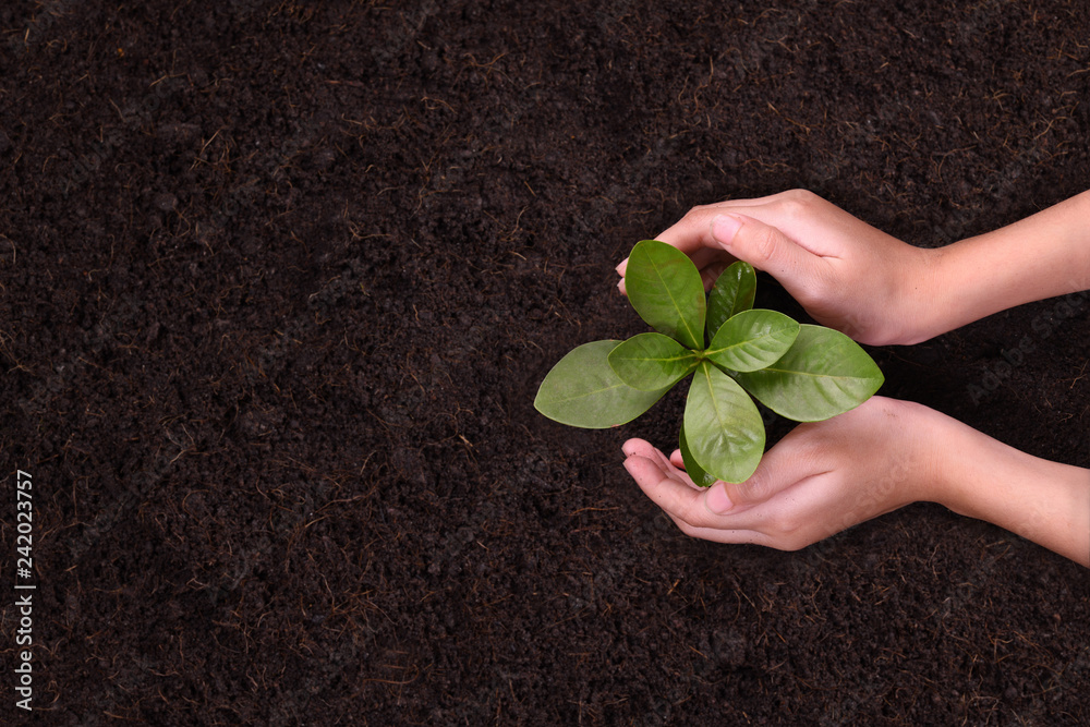 People's hands cupping protectively around young plant