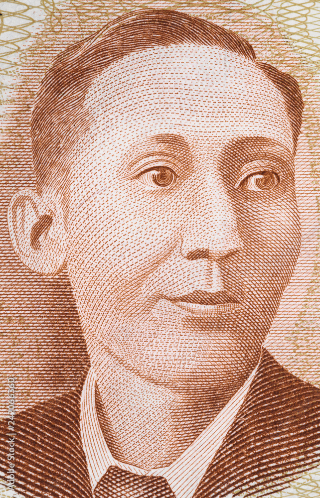 Apolinario Mabini portrait on Philippines 10 peso (1981) close up. First Prime Minister of the Philippines..