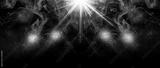 Empty scene of a show with lanterns and concrete floor, abstract background with bokeh, lights, rays