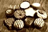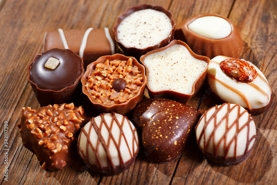 chocolate candies on wooden table