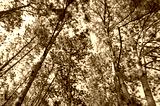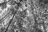 Close up Kesiya Pine tree branch at top mountain with blue sky background