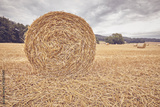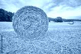 Straw round bale on a field at the end of the harvest season, color toned picture.
