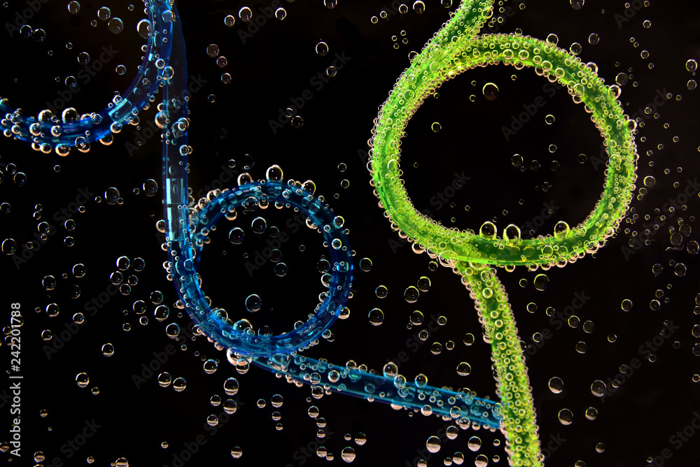 plastikstrohhalme in flüssigkeit mit luftblasen