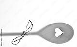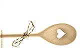 kochlöffel aus holz mit herz vor weißem Hintergrund