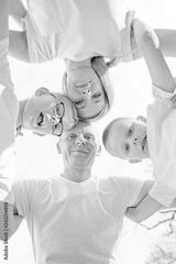 Carefree happy family playing in park at spring.