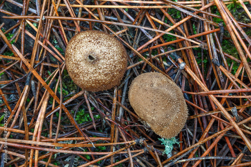 Lycoperdon umbrinum. Bejín pardo. Pedo de lobo sombrío. Bosque de pinus pinaster.