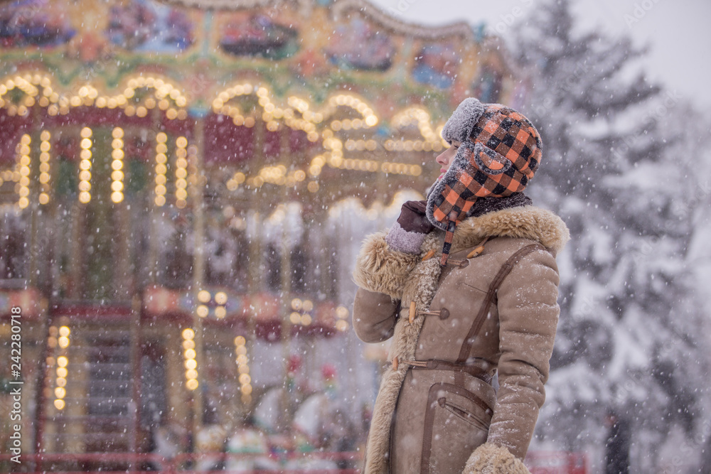 Outdoors lifestyle portrait of stunning girl walking on the holiday city