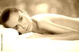 Beautiful woman is resting on spa bed
