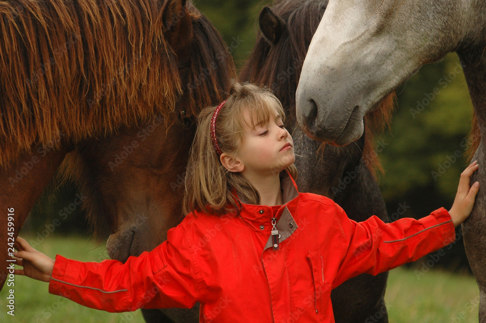 Little girl with foals