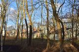 Domy jednorodzinne wśród drzew podczas jesieni.
