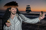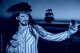 Portrait of handsome male pirate of the evening sea as a symbol of tourism and travel