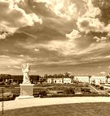 View of the baroque park of Herrenhaeuser Gaerten, with beautiful statues, in Hannover, Germany.