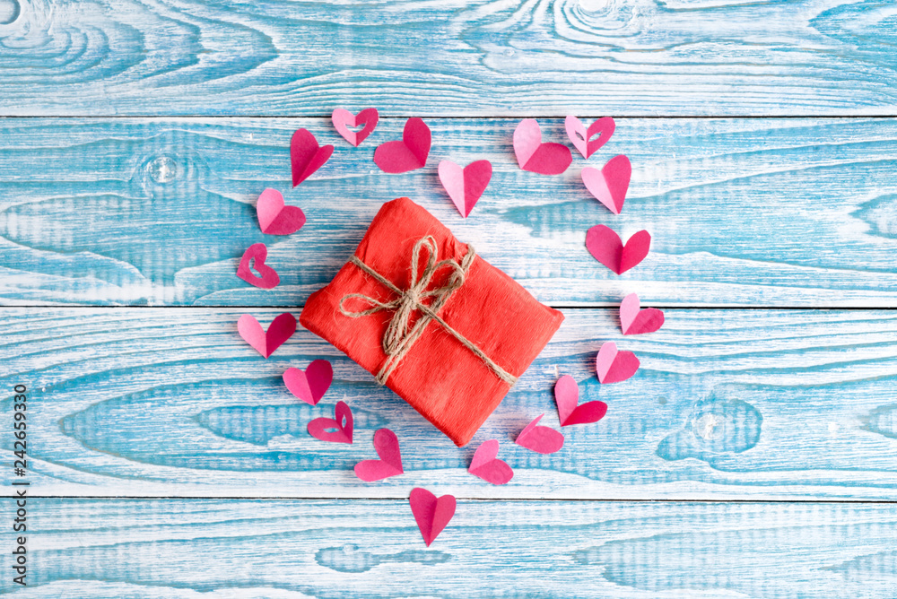 Beautiful decorative hearts on wooden background. Valentine's day. mother's day. I love you!